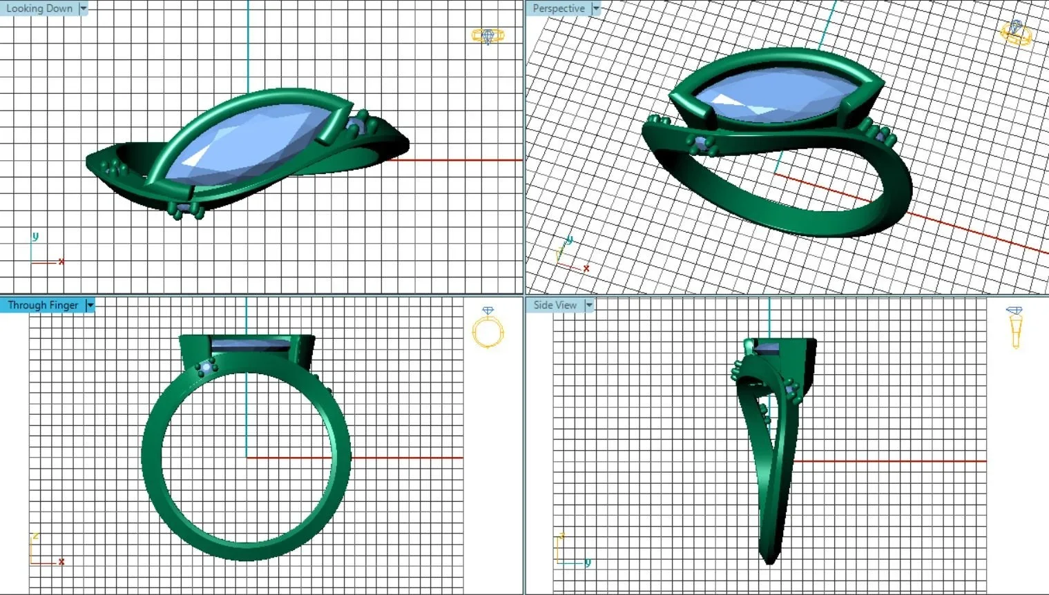 I then emailed them renders along with a video of a stone layout I was envisioning. I wanted to use a variety of green tones to play up her love of plants. The accent gems included an emerald, tourmaline, and peridot.