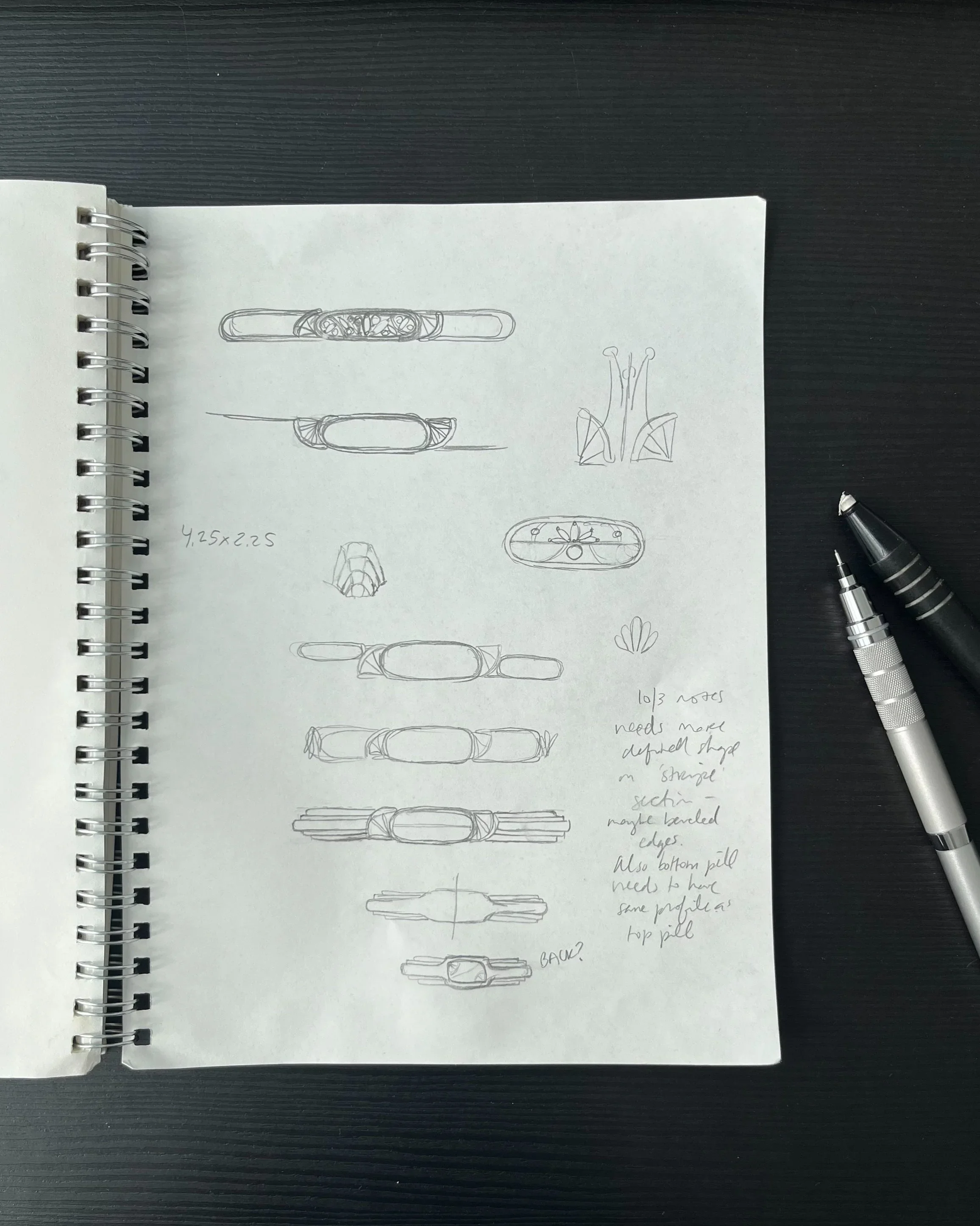 Scroll through to see the technical CAD, Renders, and wax prototype: