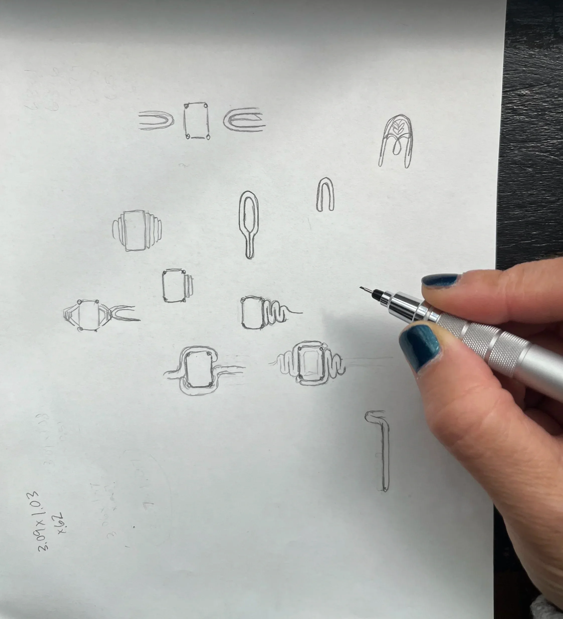 Here are just a few really rough sketches during my ideating phase. During this stage, I sketch out anything and everything; almost like a brain-dump of possibilities until a strong concept forms. Once formed, I then hash it out in the 3D renders.